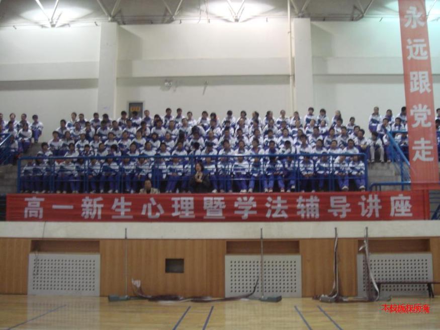 10月19日下午,银川一中体育馆内,一场心理辅导讲座以特殊的形式拉开了帷幕。这次讲座主要是针对高一新生当中近期普遍出现的心理问题,如高中学习心态的调适、期中考试应试心态调整等。