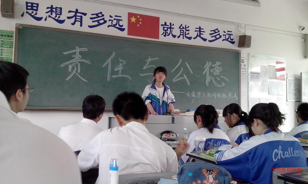 2013年6月3日,我校高一高二年级学生利用班会时间举办了“从爱护学校公物谈公德与责任”主题班会及团日活动。在这次活动中,同学们参与其中,积极参与讨论、高质量地完成了提前布置的调查活动,搜集并整理了身边的一些破坏公物的现象,一些照片再现并直观的呈现了平时对于公物的破坏,使同学们感受颇深,其中搜集的过程也锻炼了同学们的能力,提高了同学对于班会及团会的参与度。同时也引起了大家更深的思考。此次活动让同学们对于“公物”这一模糊的概念更加清晰,理解其背后的深层含义。也让同学们反省了曾经犯过的破坏公物的错误,认识到了问题的严重性。破坏公物,其本质反映了个人的责任心和作为一个社会公民的公德感的问题,作为二十一世纪现代的中学生,祖国和世界的未来接班人必须提高自身素质,认识到自己肩上的责任和需履行的义务。小到破坏公物,大到对社会道德的维护。