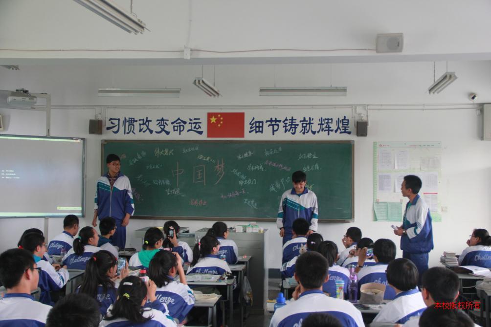 各班级围绕“我的中国梦”这一话题展开了热烈的讨论。讨论会主持形式新颖,内容灵活多变,场面气氛热烈,同学们充分参与其中,活动井然有序,赢得了同学们的一致好评。