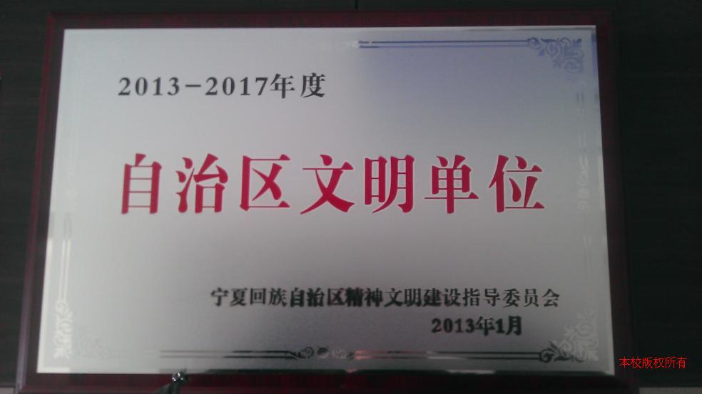 根据自治区文明委《关于命名自治区文明城市和继续保留的自治区文明城市、文明村镇、文明单位、文明行业的通报》(宁文明委[2013]1号)文件通知,银川一中经复查审核,继续保留自治区文明单位荣誉称号。