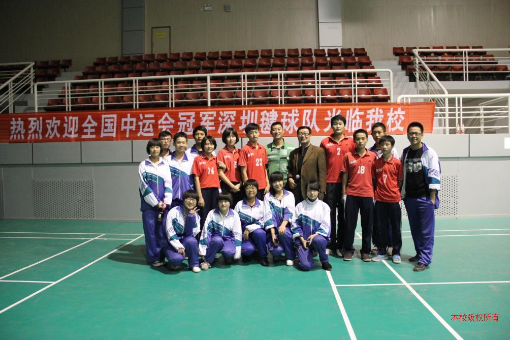 10月12日下午,国家体育运动中心社体中心领导携全国中运会毽球冠军深圳毽球队来到银川一中宣传推广毽球运动,队员们娴熟的动作、高超的技艺把毽球运动的魅力展示得淋漓精致,让前来观看的我校师生大饱眼福,受益匪浅。毽球运动是深受广大体育爱好者喜欢的体育休闲运动项目,是老少皆宜不受场地条件限制非常易于开展的群众性体育运动项目。冠军队员高水平的表演激发了我校体育爱好者的极大兴趣,对于此项特色运动项目落户银川一中起到了良好的推动作用。
