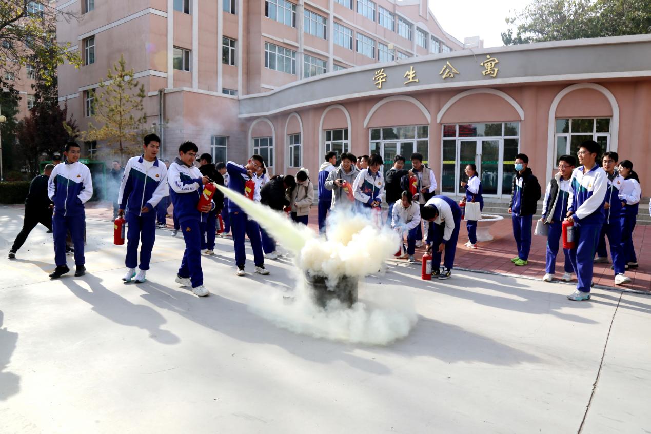 讲解结束后,部分学生使用灭火器进行现场灭火实操练习。