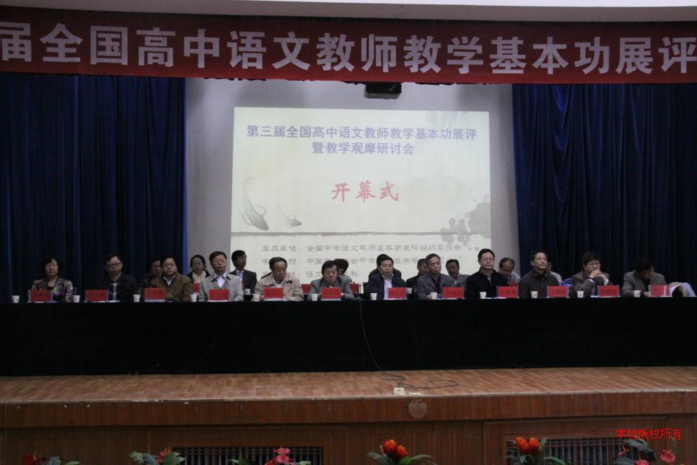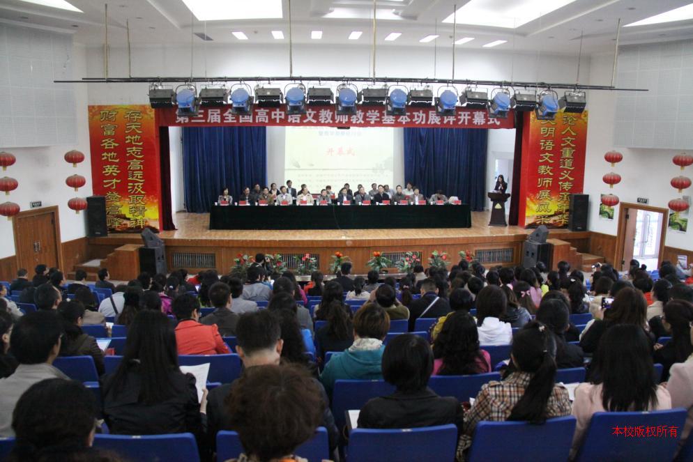 13日上午,第三届全国高中语文教师教学基本功展评暨教学观摩研讨会在我校科技楼三楼报告厅召开。开幕式上,中国教育学会中学语文教学专业委员会理事长、人民教育出版社编审顾之川教授和中国教育学会中学语文教学专业委员会学术委员会主任、天津市教育教学研究室主任、特级教师伊道恩教授亲临会场并作了专题报告。中国教育学会中学语文教学专业委员会副理事长、中央教科所研究员张鹏举和语文学习报社社长包天仁教授分别发表了重要讲话。来自全国各地的一千多名语文界精英汇集。与会人员有:中国教育学会中学语文教学专业委员会领导及理事;国内知名语文教育、教学专家及学者;各地高中语文名师;各地各级高中语文教研员;各省(自治区、直辖市)选送的参加语文教学基本功展评现场授课的教师选手;各省(自治区、直辖市)选送的参加优秀课例评比的教师选手;各地一线中学高中语文教师代表;各地各级学校主管语文教学的领导及其他相关教育工作者等。开幕式由语文学习报社北京研发中心主任盖丽娃主持。