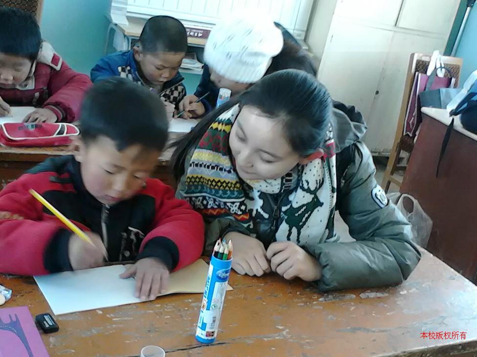支教团队来到了田记掌村,尽管天气严寒,几经辗转,团队的每个人依旧掩饰不住它们的兴奋与喜悦。银川一中北外班高一年级的小老师们为田记掌村的同学们送去了各种学习用具,教会他们如何使用后,小老师们又极为用心且耐心地教授孩子们绘画、数字的书写、音乐、拼音、10以内的加减法等多种内容。当一个小老师在讲台上授课时,下面的其他小老师从旁辅助孩子们学习,孩子们也很兴奋,非常配合地完成小老师们布置的任务。每节课上完,支教团队的成员们都有一种成就感,是一种难以忘怀的经历。