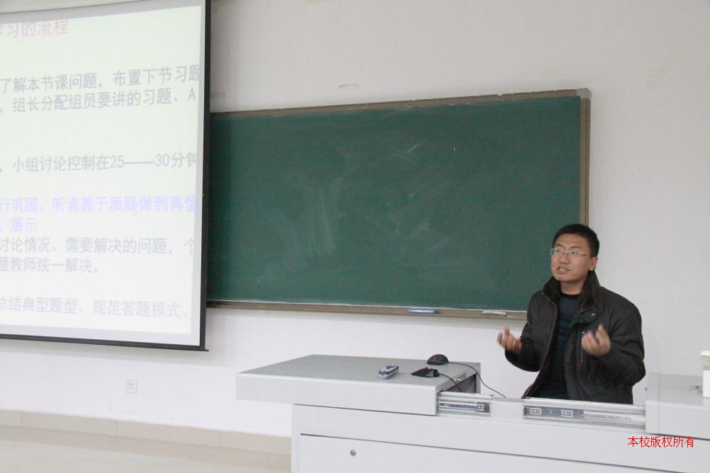 教务处副主任张永宏凭借丰富的教学经验,给大家分享了自己在高三教学中开展六人合作学习小组的做法和心得。他首先解读了新课程的理念,这种教师引导学生主动参与、亲身实践、独立思考、合作探究的学习方式,既提高了学习效率,又促进管理方式、评价方式的转变。六人合作学习小组不仅使学习能力较弱的学生得到提高,还能反过来促进帮助者的提升,真正实现了学生整体提升的目的,同时也让优生真正认识到帮助别人就是成就自己。然后详细讲解了小组合作学习的实施策略和流程,强调组建合作学习小组需要班主任搭建平台,科学地分组、合理地安排班级小组座位、选择优秀的学习小组长是合作学习活动顺利开展的前提。