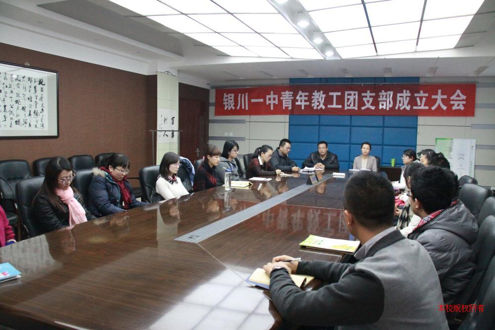 为团结和带领青年教职工勤奋学习、努力工作,进一步发挥青年教职工在学校建设和发展中的作用,2013年12月13日下午,银川一中青年教工团支部成立大会在校办公楼三楼会议室举行,副校长亢燕、政教处副主任李建国、团委副书记张德萍和青年教工团支部全体成员出席了会议,会议由团委书记潘雄武主持,亢校长和潘书记分别致贺词,李主任宣布了《关于银川一中成立青年教工团支部的批复》和《关于成立银川一中青年教工团支部和学生团总支部的决定》。