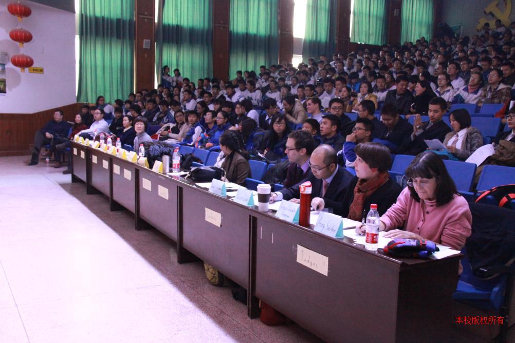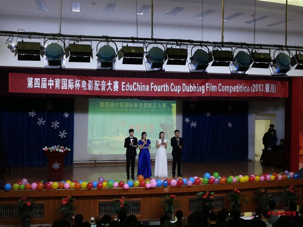 2013年12月20日上午八点半,由银川一中国际部中育班举办的电影配音大赛在科技楼三楼报告厅拉开了帷幕。无锡、长沙、桂林、武汉、乌鲁木齐、银川六个国际课程中心的孩子齐聚一堂,为大家送上了一场丰盛的影音盛宴。大赛共设指定配音、自选配音、电影海报及电影影评四个比赛项目。大赛全英文主持,评委也都由外籍老师担任。一中的校领导亢燕副校长、国际部副主任魏凤玲老师以及中育国际的执行副总裁曹华观摩了此次比赛。