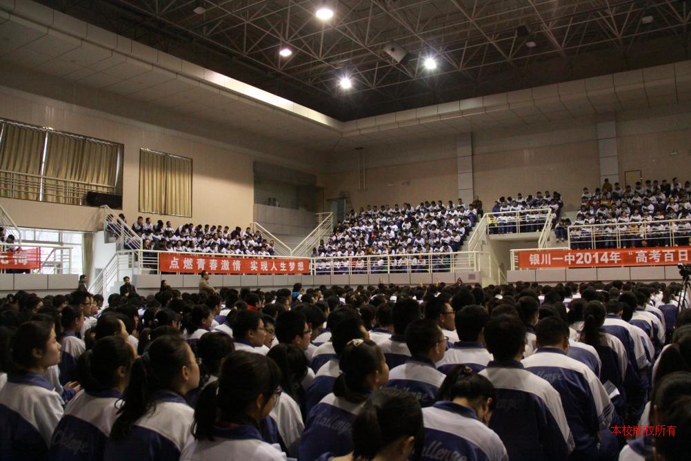 在庄严的宣誓声中,师生们精神饱满、豪情震天,信心百倍、斗志昂扬地去迎接未来的一百天,校长和老师们亲切的鼓励和振奋人心的动员寄托着他们对同学们殷切的希望,点燃同学们备战高考的斗志,同学们一句句掷地有声的誓言,不仅释放了内心压力,缓解了紧张情绪,更承载着一中学子们的梦想。我们有理由相信,在全体高三师生共同努力下,银川一中2014届高三学子必将再创辉煌,续写新篇章!