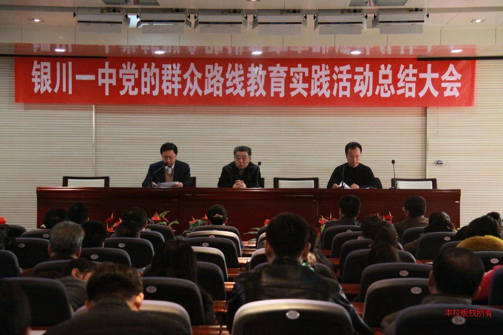 3月5日下午,银川一中党的群众路线教育实践活动总结大会在综合楼二楼会议室召开。自治区教育厅党的群众路线教育实践活动第二督导组组长张义康出席会议并作重要讲话。我校党委副书记、校长王力争代表党委对学校开展教育实践活动情况进行总结。会议由校党委委员、副校长蔺晓林主持,学校领导、党委委员、中层干部及全体党员出席了大会。