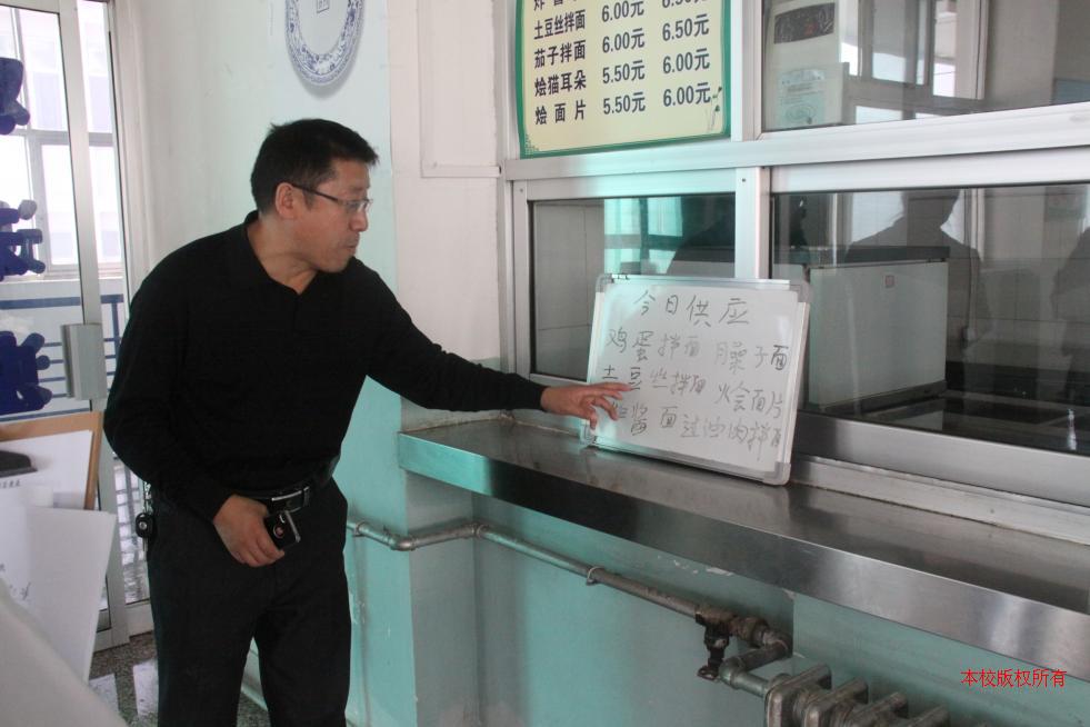 2013年9月26日,上午十点,后勤中心主任柯良才、校医冀艳、陆岩和食品安全监督员于彦梅在餐厅经理的陪同下对学校餐厅的安全卫生进行了检查。他们对餐厅一楼、二楼的原料库、快餐部、特色部、面点部、早点部及公共区域进行仔细的检查,着重检查了水暖电设施设备及餐厅卫生状况,针对检查中出现的问题及时与餐厅经理和管理人员进行沟通,促其积极整改,积极排查一些安全隐患。