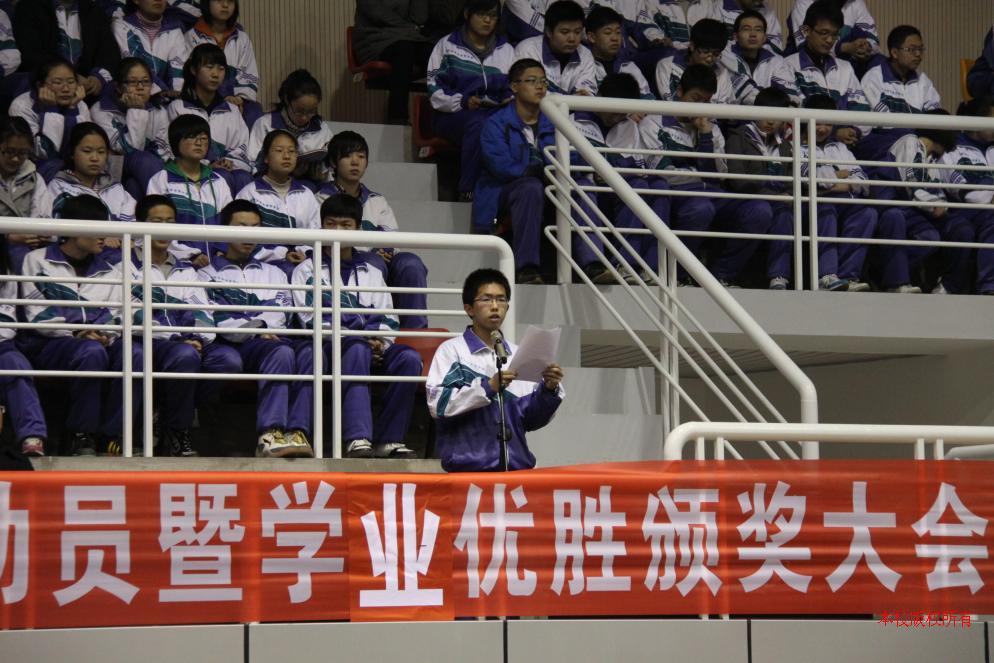 高三年级学生代表郑铂元首先发言表达了全体高三同学以优异成绩拿下2011年高考的决心和信心,他鼓励同学们相信自己,超越自我,把握好这最后的100天,去迎接六月的绚烂。