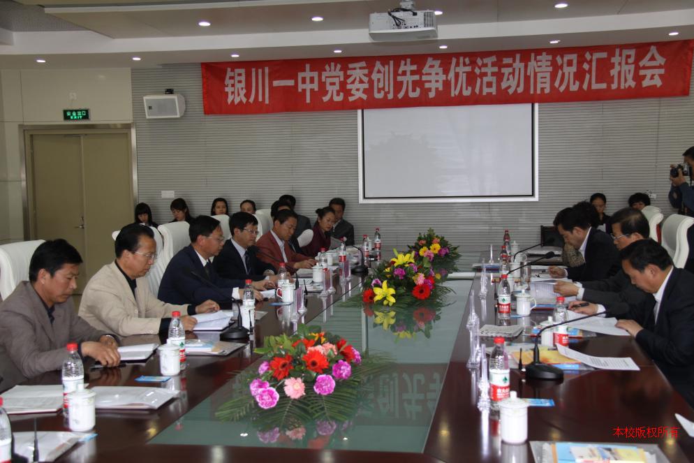 座谈会上,自治区教育工委副书记李秋林汇报了全区教育系统创先争优活动的开展情况,王力争校长代表银川一中党委就学校创先争优的开展情况、主要做法和初步成效以及下一阶段的工作打算做了汇报。他说,银川一中党委在创先争优活动中,认真总结学习实践科学发展观活动成功经验,紧扣党员“爱岗敬业奉献,争创一流业绩”,按照“建设一个好班子,带出一支好队伍,创办一所好学校”的工作要求,团结带领广大教职工努力拼搏,顺利完成了各项工作任务,有力促进了学校各项事业的科学、快速发展。广大党员干部的精神风貌、工作作风都有了进一步转变,各项工作取得了明显成效。在今后的工作中,学校将继续采取得力措施,进一步抓好活动的整体推进,为宁夏教育事业的腾飞发展做出更大的贡献。