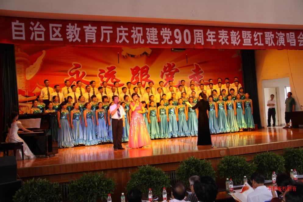 6月22日下午,自治区教育厅庆祝建党90周年表彰暨红歌演唱会在银川一中举行。来自教育厅直属单位和学校的13支合唱队,用激昂的歌声,表达对党真挚的情感和由衷的祝福。