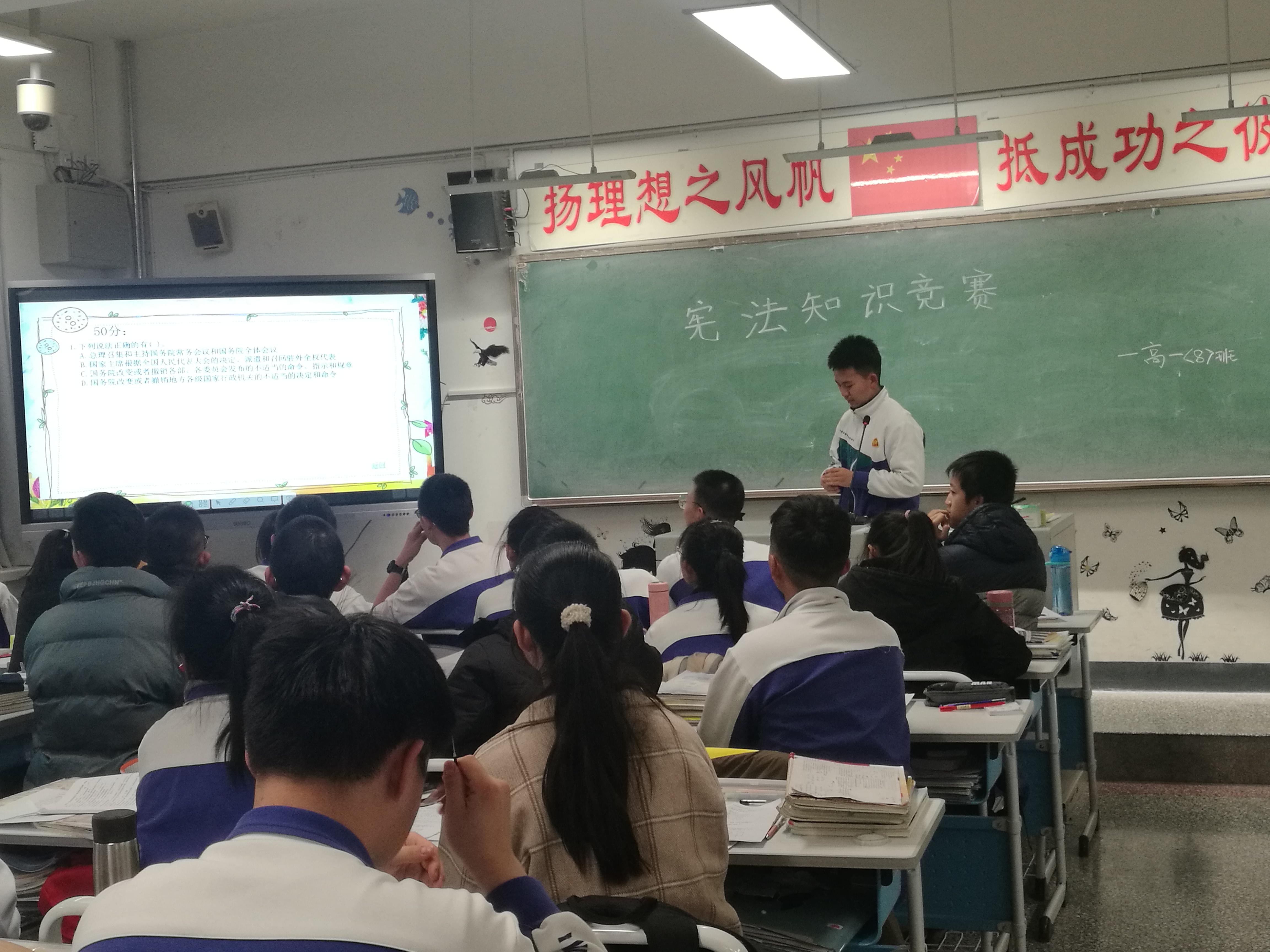 12月2日下午,学校组织召开了高一高二年级“弘扬宪法精神,厚植爱国主义情怀”宪法教育主题班会。各年级、各班紧扣主题,联系实际,诵读宪法条文、开展宪法知识竞赛、观看宪法宣传视频……在形式多样、内容丰富的活动中,同学们对宪法的理解愈加深刻,学法、守法、用法的信念愈加坚定。