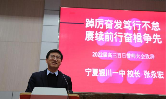 为提高师生备战高考意识,激发学生学习斗志,宁夏银川一中于2022年2月28日在校体育馆召开“高考百日冲刺”动员暨学业优胜颁奖大会,全体校领导、高二、高三年级学生及各班主任参加大会,副校长陈虎堂主持大会。