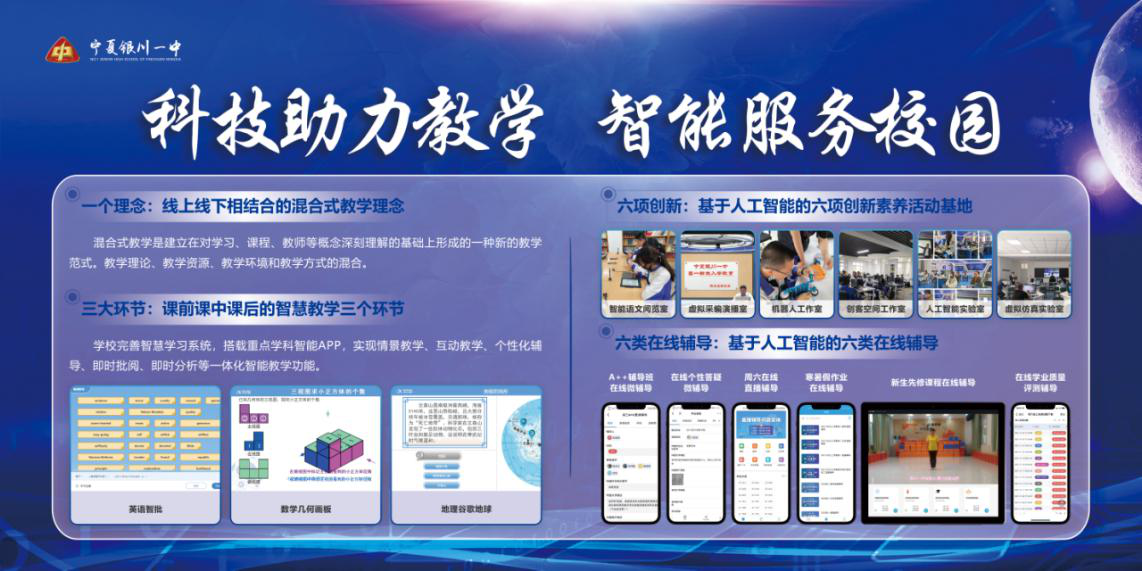 完善“1366”智慧教学模式。实现了智慧教室全覆盖、常态化,完善了智慧学习系统,搭载重点学科智能APP,建成智能语文阅览及虚拟采编演播室、机器人工作室、创客空间工作室、人工智能实验室、虚拟仿真实验室等六大人工智能应用创新实验基地,为学生搭建创新素养活动的平台。