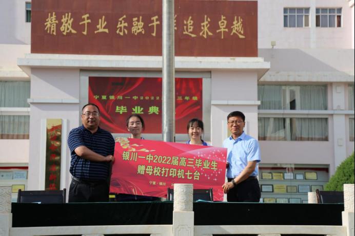 累累硕果装满行囊,浓浓师恩铭刻心房,2022届高三毕业班代表向母校赠送了纪念品,并合影留念。