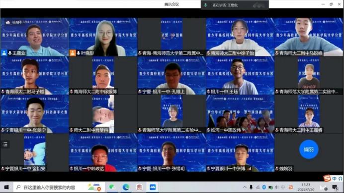 七月的天空流光溢彩,七月的大地锦绣壮丽,七月的少年意气风发。2022年7月20日宁夏银川一中10名高二学生经学校推荐,在梅杰老师的带领下,齐聚云端,共同参加由中国科协,教育部联合举办的“2022年全国青少年科学夏令营中国科学院大学分营”活动。