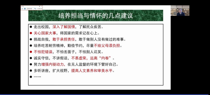 我们的青春处于科技大创新时代,当代中国青年科学家们更应该有属于自己的责任和担当。“龙芯”的发明人李国杰院士为我们讲解知识分子的担当和中国科学家的精神。李院士讲解郭永怀先生坠机时用身躯保护绝密公文包;袁隆平院士一辈子用坚定的信念研究杂交水稻;夏培肃先生留学海外,毅然归国做栋梁,无论多么艰辛,但必须学成回国的决心。李院士通过讲解自己的人生,告诉我们科学家的命运必须与国家紧密联系在一起。作为当代青年,要自信自强,相信自己的突出能力,如蒋新松先生在小学毕业照上写下“一位伟人正在成长”。勇于去做其他人不敢做的事情,遇到质疑、批评、误解时,忍辱负重坚持梦想,不忘初心,有能屈能伸的担当。