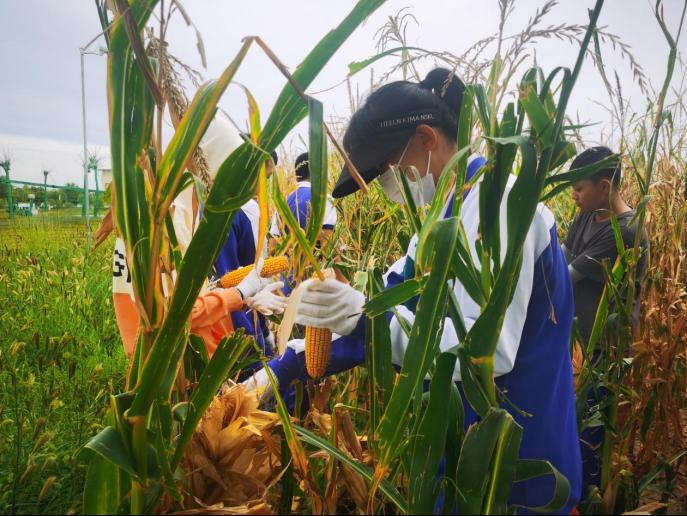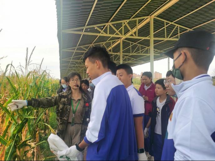 随着时间的流逝,同学们之前略显生疏的手法也熟练起来,一个个金黄的玉米棒被剥下、收集、归仓,分工明确、井然有序。面对着劳作的辛苦,同学们不仅迎难而上还在劳动过程中交流着生物、地理等相关学科的知识。汗水和衣袖上的斑驳不仅是同学们辛勤劳动的印记,更是知行合一的勋章。