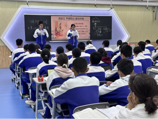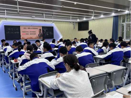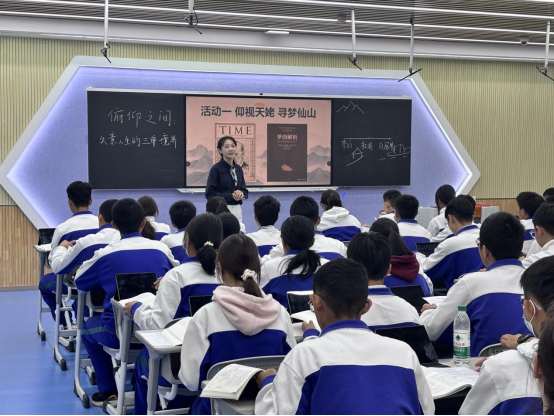 张雪老师的课堂聚焦“失意人生的三重境界”,以细腻视角串联三首唐诗:借弗洛伊德《梦的解析》带学生“仰视天姥”,寻李白梦中的精神狂欢;立足安史之乱背景,伴“万里悲秋”诗句让学生“俯视人间”,品杜甫忧国忧民的圣者仁心;通过“人物小传对读”活动,引导学生“平视知己”,悟白居易与琵琶女的真切共鸣。整堂课以情感为线,让学生在诗意中学会以精神境界超越现实困顿,尽显语文教学的人文温度。