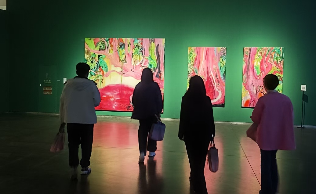 漫步于各个展厅,沉浸于装置、影像、绘画等多元媒介所构建的艺术世界之中,教师们细致观摩了作品形态与技法,深入探讨蕴含的文化理念与创作逻辑,在交流碰撞中解读当代美学的多样脉络。