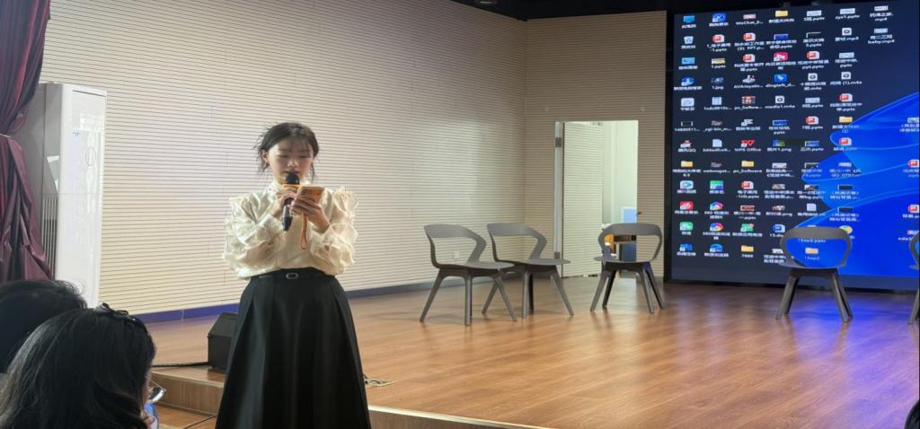 展示课后,孙紫涵老师进行了教学自评。她表示,本节课借助情景式教学与AI技术有效提升了学生阅读参与度,输出环节设计新闻直播角色扮演,借助支架式教学帮助学生自信表达、学以致用。同时她也坦诚反思:课堂为凸显AI呈现,对学生思维深度挖掘仍有提升空间;教学节奏与课堂调控可进一步优化,避免因急于推进环节而替代学生思考,未来将持续打磨、不断完善。