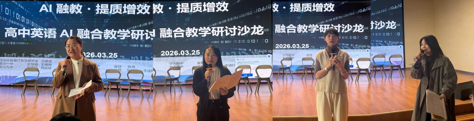 为深入推进人工智能与高中英语教学的深度融合,探索思维型教学与技术赋能的有效路径,宁夏银川一中于3月25日与宁夏大学附属中学、银川九中、宁夏长庆高级中学,联合开展以“AI融教·增质提效”为主题的高中英语大教研活动。活动以优质课例展示为引领,以多元点评交流为抓手,以主题沙龙研讨为延伸,汇聚各校优秀英语教师的智慧,共探AI时代高中英语教学新样态、新方向。