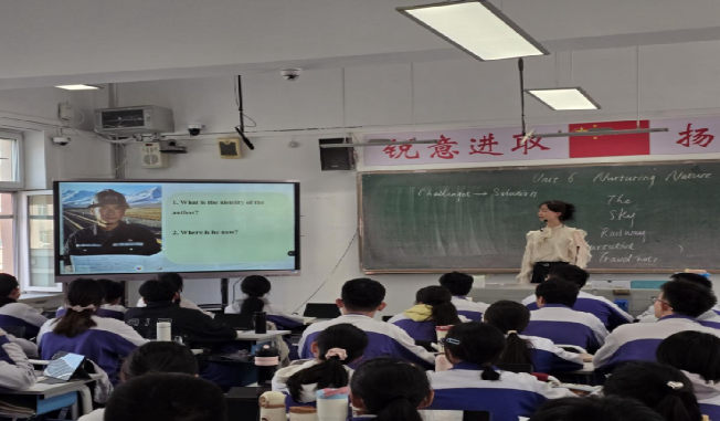 活动伊始,孙紫涵老师呈现了一堂精彩的阅读公开课。授课内容选自选择性必修第一册Unit 6 Nurturing Nature中的The Sky Railway。课堂以“天路”——青藏铁路为主线,巧妙运用 AI 数字人、情景视频、动态地图等技术,将文本情境可视化,极大增强了学生的代入感。课堂以“挑战与解决方案”为逻辑主线,层层递进设计问题链,引导学生在语言学习中感悟中国智慧与大国工匠精神,实现了语言能力、思维品质、文化意识与学习能力的有机融合。