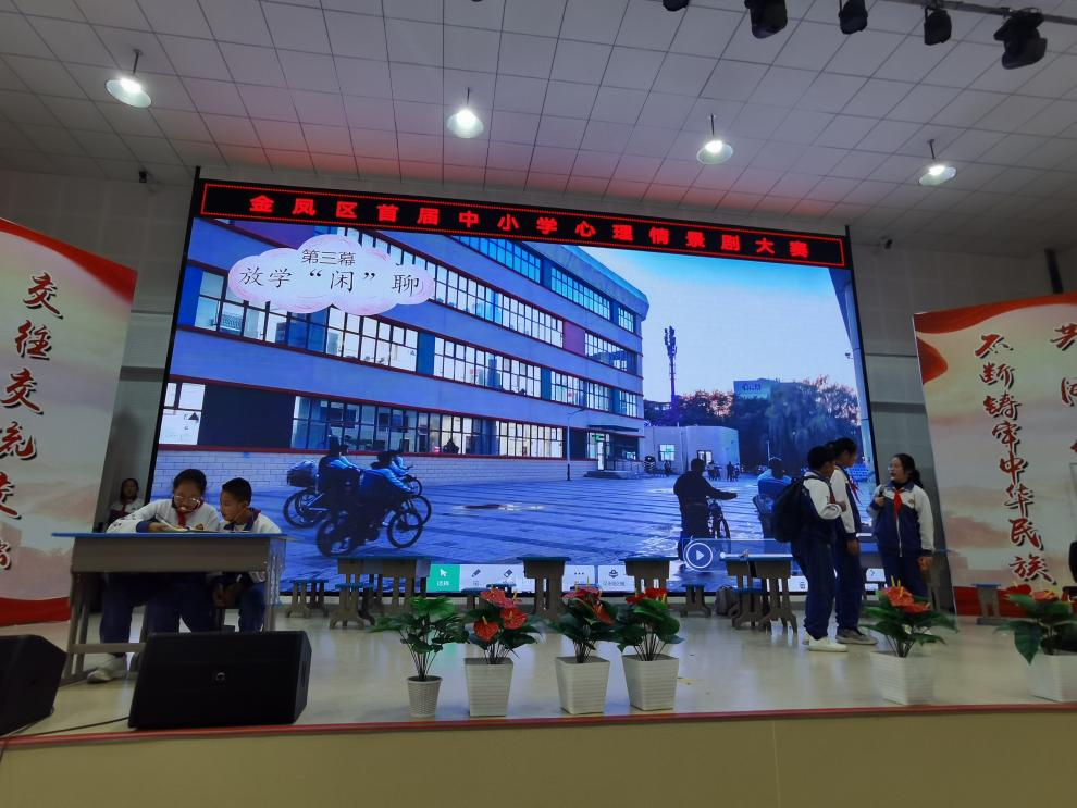 为进一步推进学生心理健康教育工作,探索学生心理健康教育新途径,更好地宣传心理健康教育知识,10月9日,我校参加了金凤区第一届中小学生心理情景剧大赛,作品《“结对子”风波》荣获一等奖。