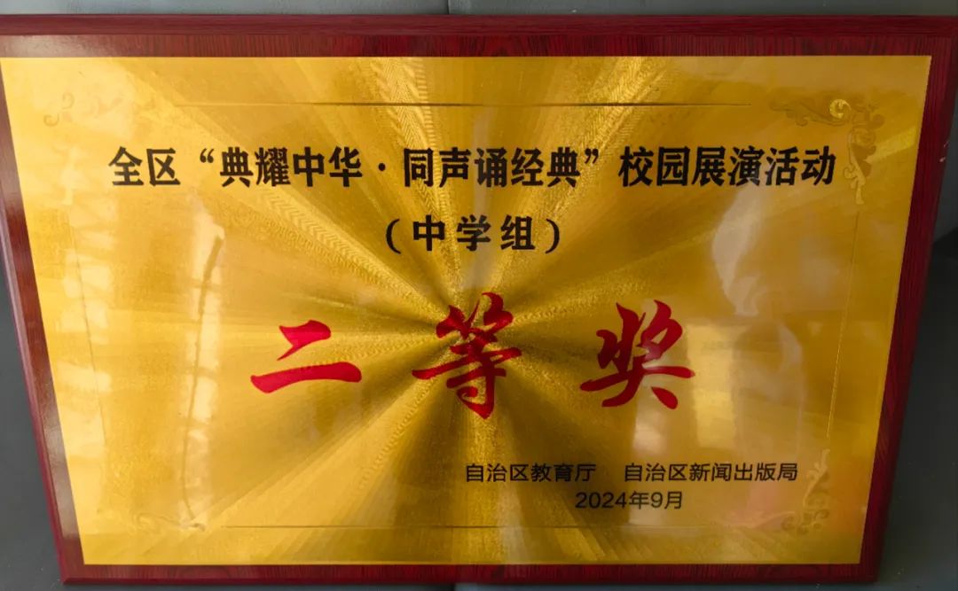 怀揣着对经典诗文的热爱,银川市湖畔中学于9月26日参加了自治区教育厅举办的“典耀中华·同声诵经典”校园展演活动,并荣获中学组二等奖。