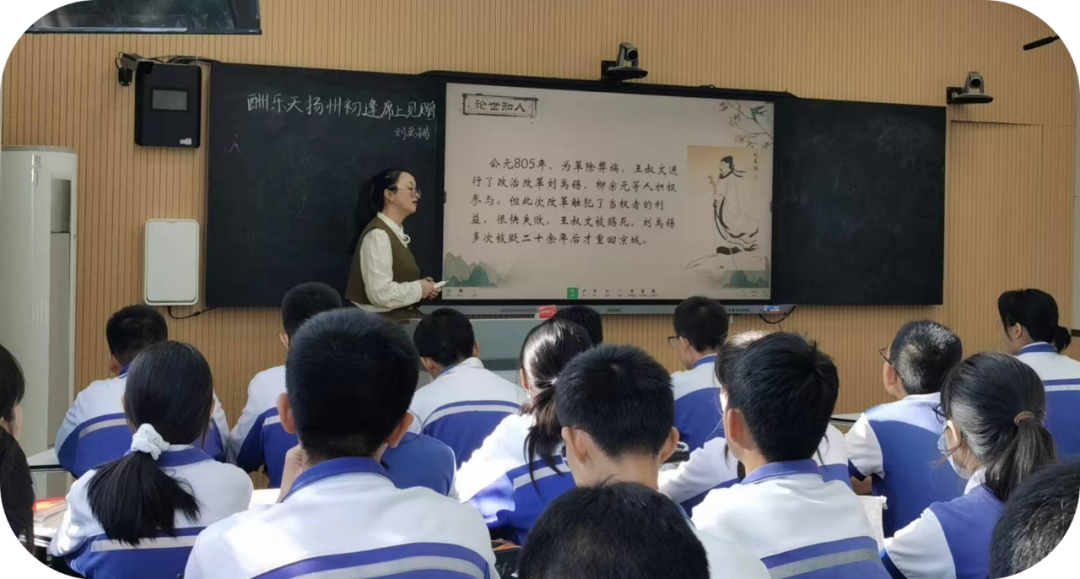 汪静老师讲授《酬乐天扬州初逢席上见赠》,紧扣新课标核心素养,展现出了独树一帜的教学风格与扎实深厚的专业素养。课堂以诗人的情感变化为主线,引导学生知人论世,体悟诗人感情。汪静老师注重培养学生思维能力,在活动开展中提升学生语言运用能力和审美创造。