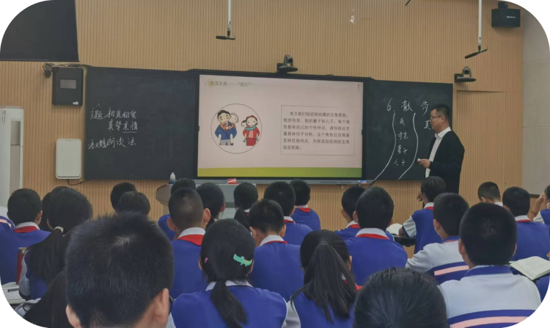 贺佳老师执教《散步》,以学习任务群开展教学,创设了新颖有趣的情境——以《散步》为参考资料,拍摄“至爱亲情”的公益短视频,然后以“挑选主角”“选择场景”和“确定标题”为任务进行,不仅激发了学生的学习兴趣,也实现了素养目标,学生在课堂互动中感悟亲情,树立了正确的价值观。