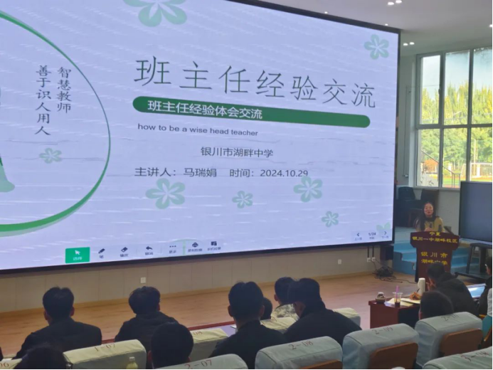 李红华校长、刘淑萍副校长出席本次活动。会上,银川市湖畔中学的骨干教师们与见习生展开了一次深刻而富有启发性的对话,从如何成为一名合格的人民教师到面对新时代挑战时应有的态度;从具体案例分析到个人成长经历分享……每一句话都如同一盏明灯,照亮了年轻心灵前行的道路。会上围绕“班主任经验交流”“新课改背景下体育课堂教学模式创新”“银川市湖畔中学体育特色活动”等主题做了专题讲座,不仅丰富了见习生们的知识结构,也激发了他们对未来职业生涯的美好向往。