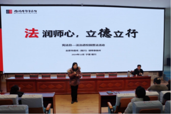 为切实提升我校依法治校和教师依法执教能力,更好践行法律法规,提高教师法律意识,加强“法律与师德”知识学习,营造平安和谐、风清气正的育人环境,近期,我校邀请北京德鸿(银川)事务所的王睿律师开展教师法律知识专题讲座。本次讲座由政教处主任彭海梅主持。