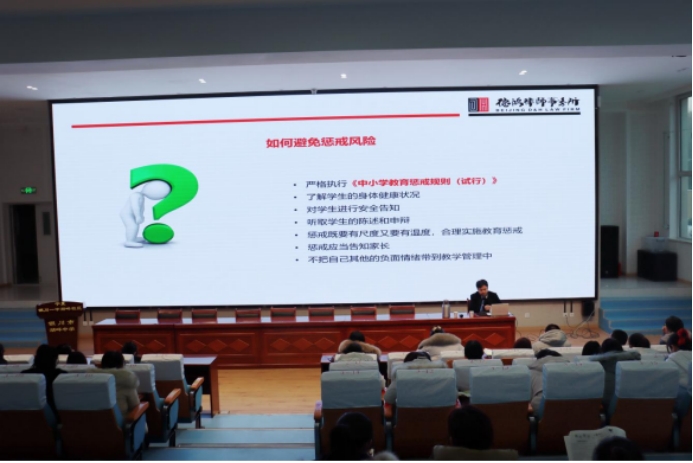 王律师结合实际案例,为全校教职工详细解读了《未成年人保护法》《中小学教育惩戒规则(试行)》等相关教育法规,并从教师权利和义务的角度出发,强调了教师在教育教学中不能触碰的法律法规红线。