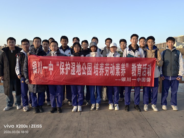 习近平总书记指出:“不断发展壮大学雷锋志愿服务队伍,让学雷锋在人民群众特别是青少年中蔚然成风,让学雷锋活动融入日常、化作经常,让雷锋精神在新时代绽放更加璀璨的光芒。”为深入贯彻落实总书记重要指示精神,引导新时代青少年读懂雷锋故事、感悟雷锋精神的时代价值,进一步激发我校学生主动向雷锋学习的热情,2025年3月6日,银川一中组织高一年级部分班级学生,由杨瑞老师带队,前往宝湖湿地公园开展“保护湿地公园 培养劳动素养”志愿服务实践活动,以实际行动传承和弘扬雷锋精神,践行银川一中“三色”教育,让“黄色·黄河生态保护高质量先行区建设”在青年的心中种下坚实的种子。