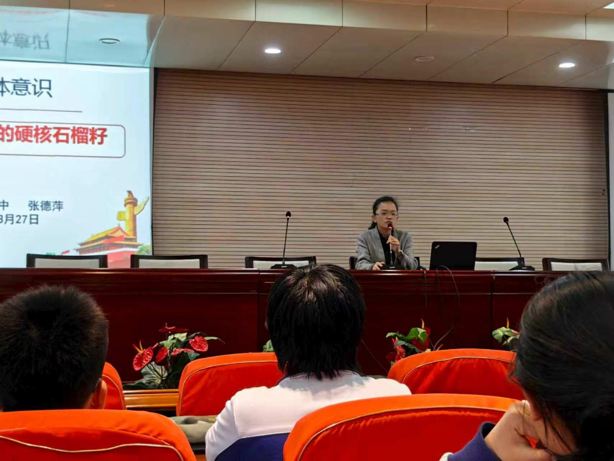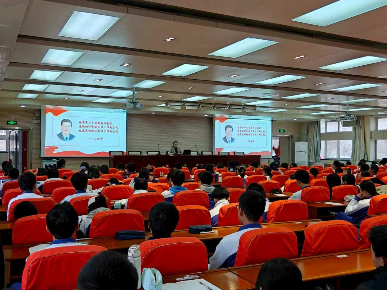 校团委学生委员主持开课仪式,学校全体党校学员及入团积极分子参加仪式。开课仪式后,德育科贺姗老师点明铸牢中华民族共同体意识的重要意义,介绍本次党课的主讲人张德萍副校长。主讲人张德萍副校长以《铸牢中华民族共同体意识——培养担当民族复兴大任时代新人》为题,为同学们带来了一节精彩而深刻的党课。