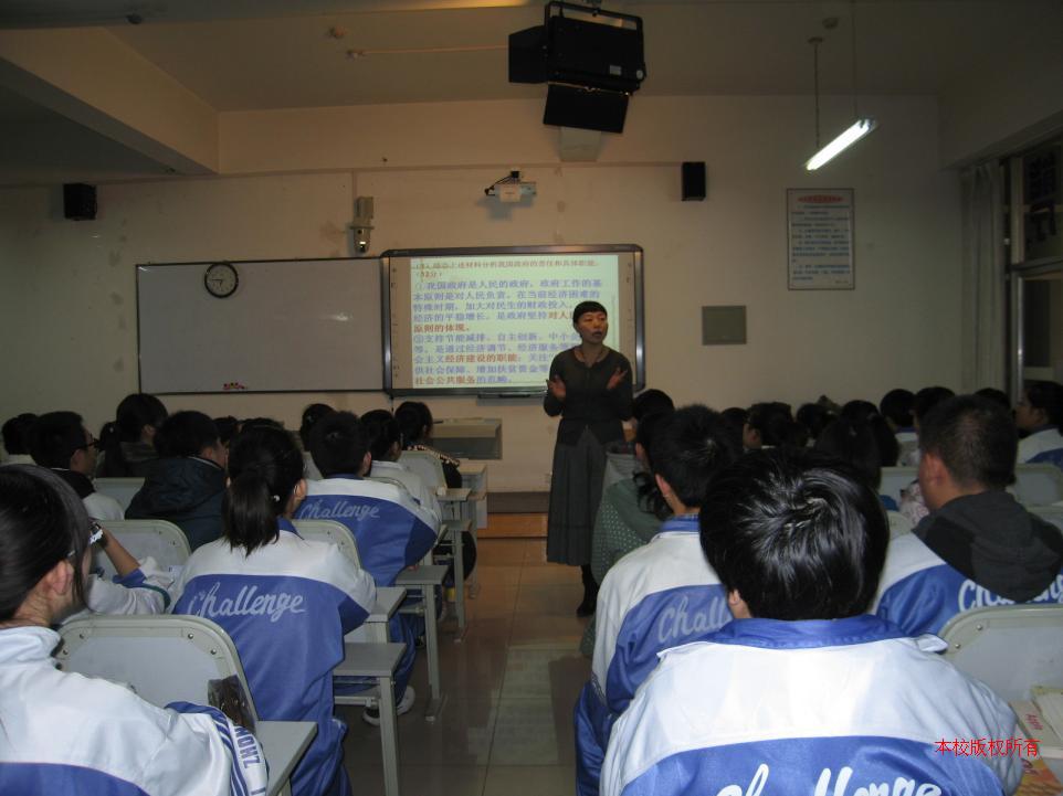 自治区思想政治课堂教学研讨会于11月24日在我校举行。参加会议的有全区各个学校的思想政治课教师和各市县教研员。我校杨学萍老师做了《《我国政府是人民的政府》复习示范课。下午北京资深专家宋景堂做了关于《新课改背景下政治课教学》的专题讲座。