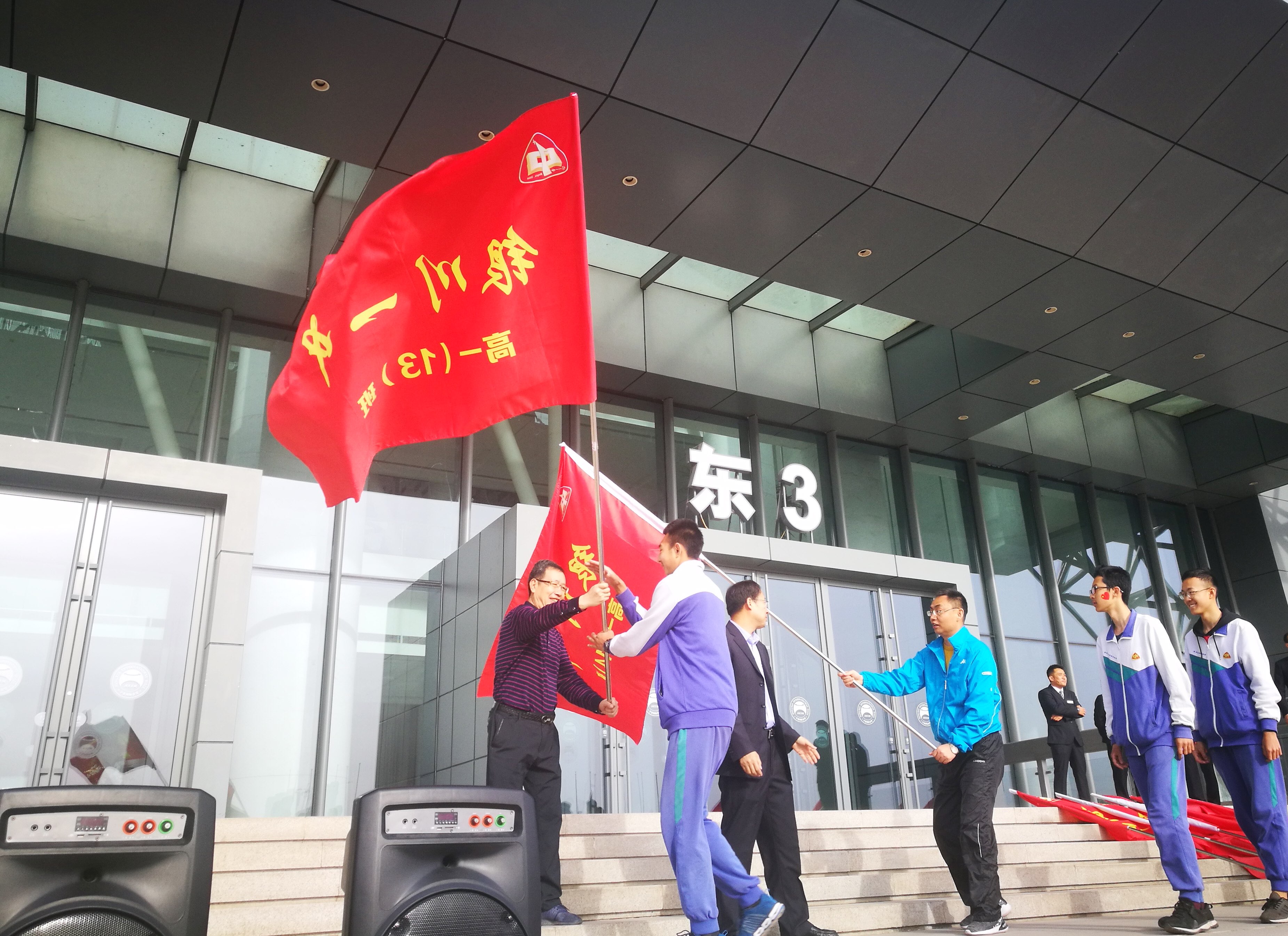 4月20日上午7点50分,参与活动的师生全部到位。学校为住宿生专门安排了六辆大巴车接送。同学们按照集合令以班级为单位整齐列队,班主任给同学们分发了本次活动的纪念卡。张剑云校长亲自为高一年级19个班授旗,旗手们挥舞着手中的旗帜,满怀喜悦与激动,表现出“一中人”的自信。