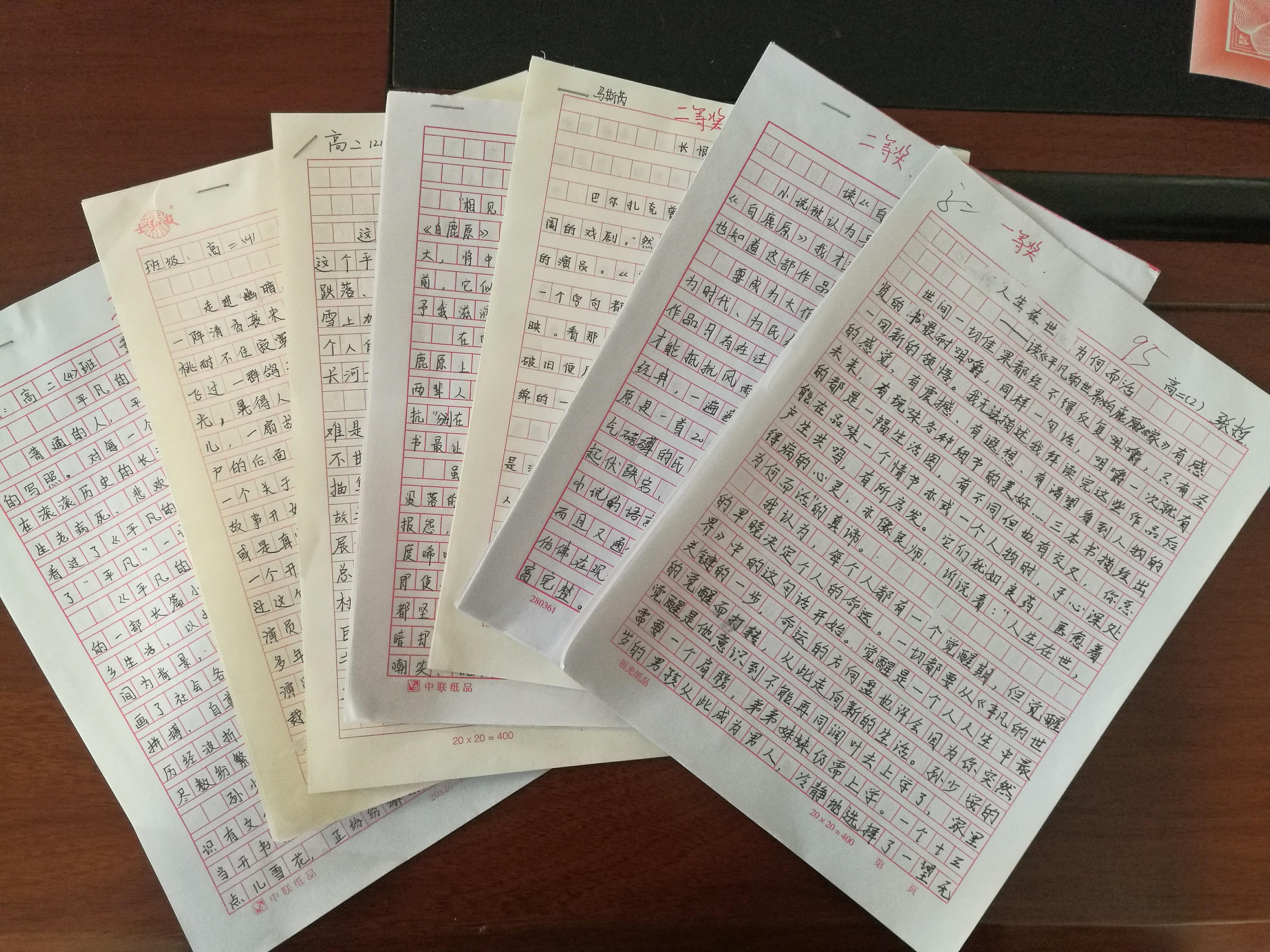 开学初,语文组老师们分别对高一、高二年级各班征集的文章进行认真评选,最终评选出一等奖17名,二等奖34名,三等奖67名。班会课上班主任就获奖同学的优秀作品进行了交流分享,并鼓励同学们多读书,读好书,以提高阅读能力和欣赏水平。同时,学校分别对获奖同学进行表彰奖励,世纪清华书店为获奖同学赠送了奖杯、读书卡等奖品。
