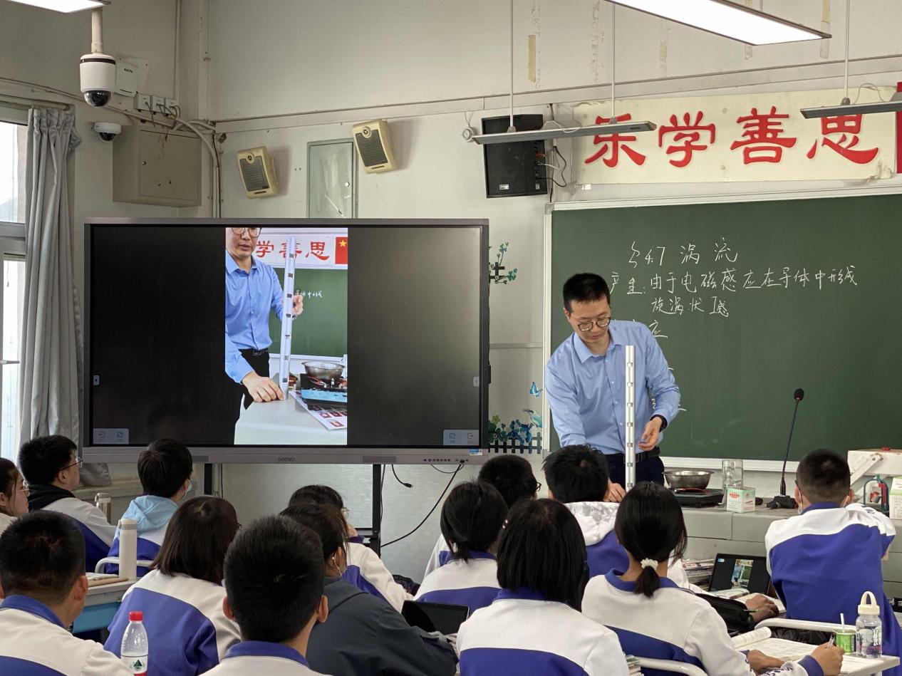 3月15日,高二组的梅杰老师以“涡流”为题,为我们展示了一堂有趣的、令人印象深刻的课堂。在这节课中,梅杰老师从涡流的产生、热效应、磁效应、机械效应四个方面进行讲解,在这其中利用常见的生活用品电磁炉做实验,不仅实验现象明显,而且利用问题引导学生思考,让学生在玩中学,加深了学习印象。