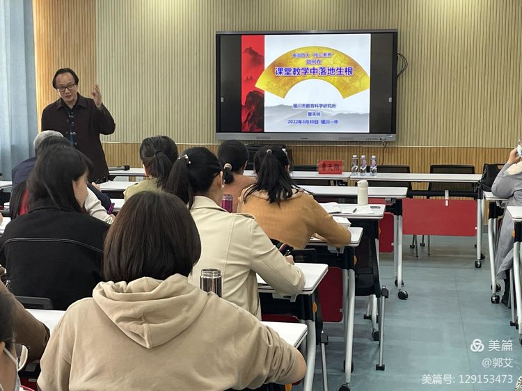 “十四五”时期我国教育进入高质量发展阶段,教育改革发展的外部环境和宏观政策环境已发生深刻变化,面临着新形势、新阶段、新理念、新格局、新目标、新要求。为了使我校英语教师能更好地将英语四大“核心素养”渗透在课堂教学中,银川一中英语教研组于2022年3月31日在守正楼三楼开展教研活动。此次讲座邀请银川教育科学研究所主任、英语教研员曹天祥老师主讲,我校全体英语教师参与活动。