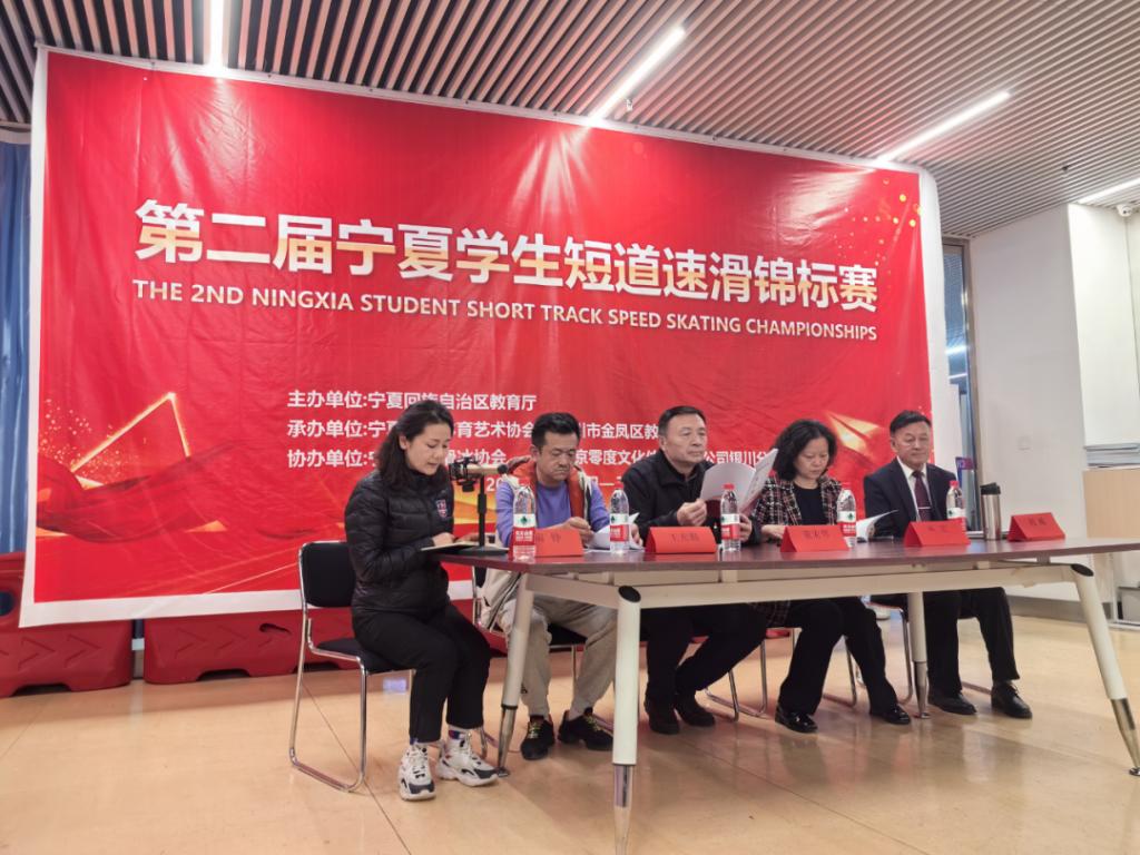 在银川市建发大阅城冠军滑冰场举行的第二届宁夏学生短道速滑锦标赛。